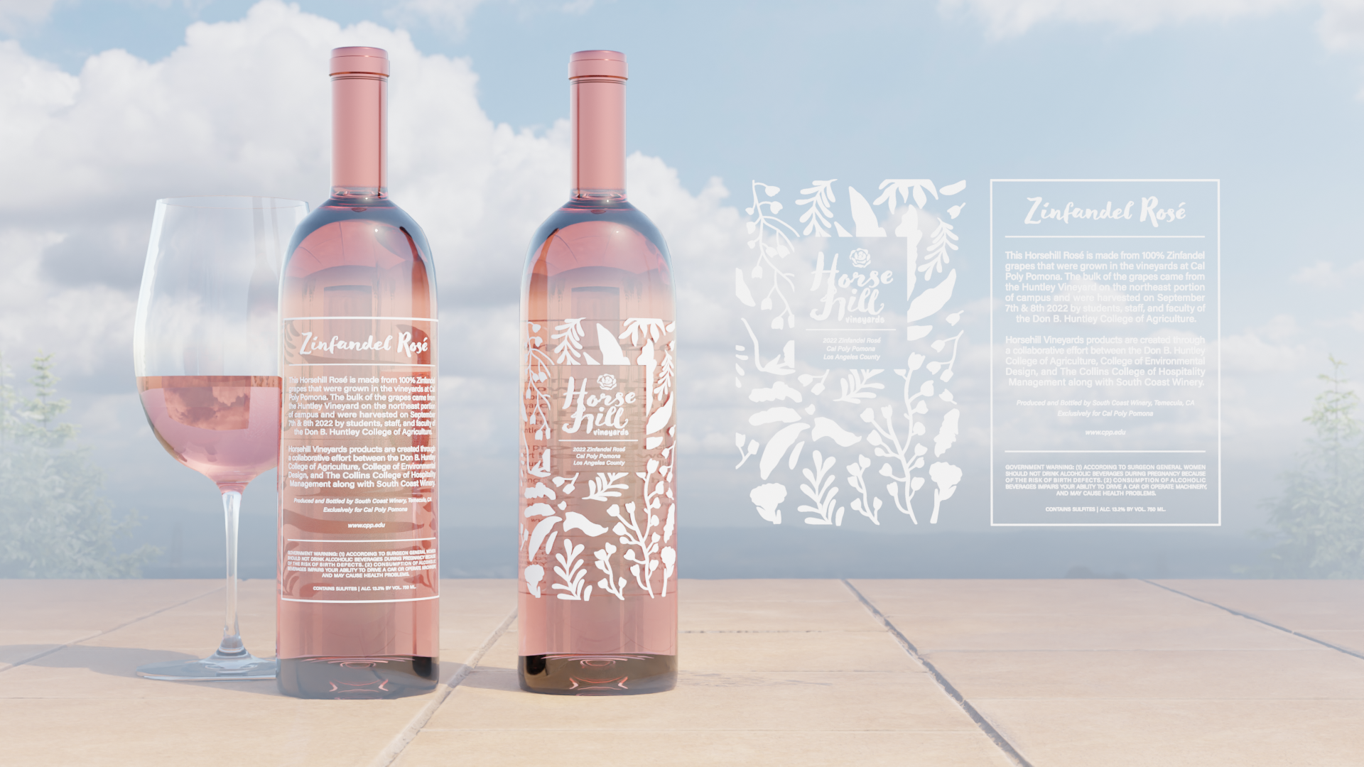This project was posed as an open ended design project to create the label for the new batch of Zinfandel Rosé coming out of Horsehill Vineyards at Cal Poly Pomona. The main goal that we kept in mind for this label design process was to create a design that stood out on the shelves in comparison to the other bottles on the shelf, and would stand out especially well at its primary point of sale in the CPP Farm Store.
